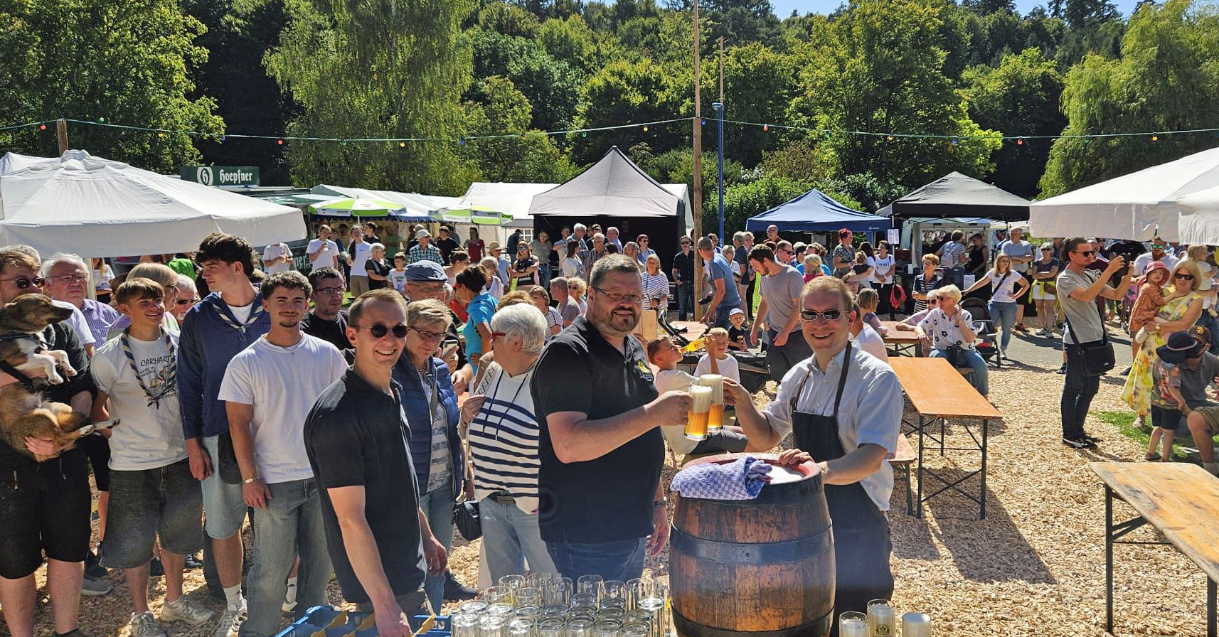 Das 47. Waldbronner Kurparkfest war wieder mal mit einer der Höhepunkte der Waldbronner Woche: Bei strahlendem Sonnenschein konnte Bürgermeister Christian Stalf mit dem Fassanstich das Fest eröffnen - tänzerisch von den Flying Petticoats und musikalisch vom Musikverein Lyra Reichenbach umrahmt. Wie immer gab es Freibier für alle, diesmal gesponsert von Ralf Störzbach vom Lindenbräu.
