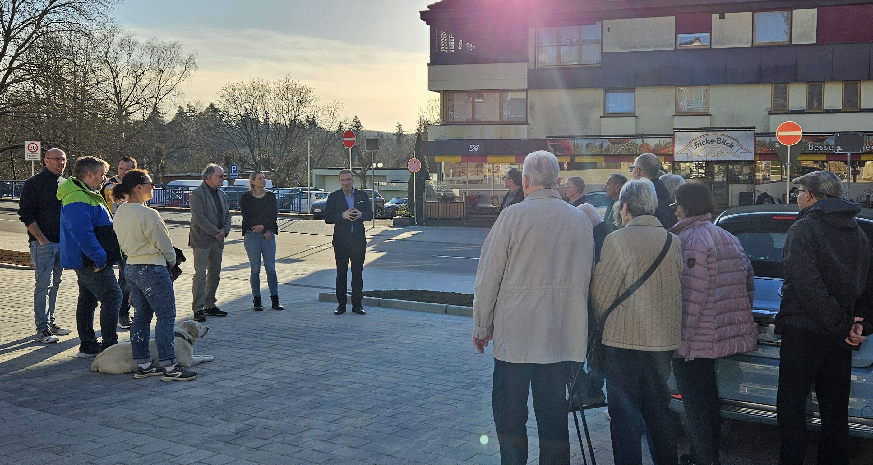 Der Monmouthplatz hat ein „neues Gesicht“: Im Zuge der Sanierung der Pforzheimer Straße ist der Platz umgestaltet worden. Die Arbeiten haben Anfang Februar begonnen und sind bereits nach sechs Wochen abgeschlossen. Zur einem kleinen Rundgang sind neben Bürgermeister Christian Stalf, den beteiligten Planern und einigen Gemeinderäten auch die Mitglieder der Monmouthfreunde gekommen.