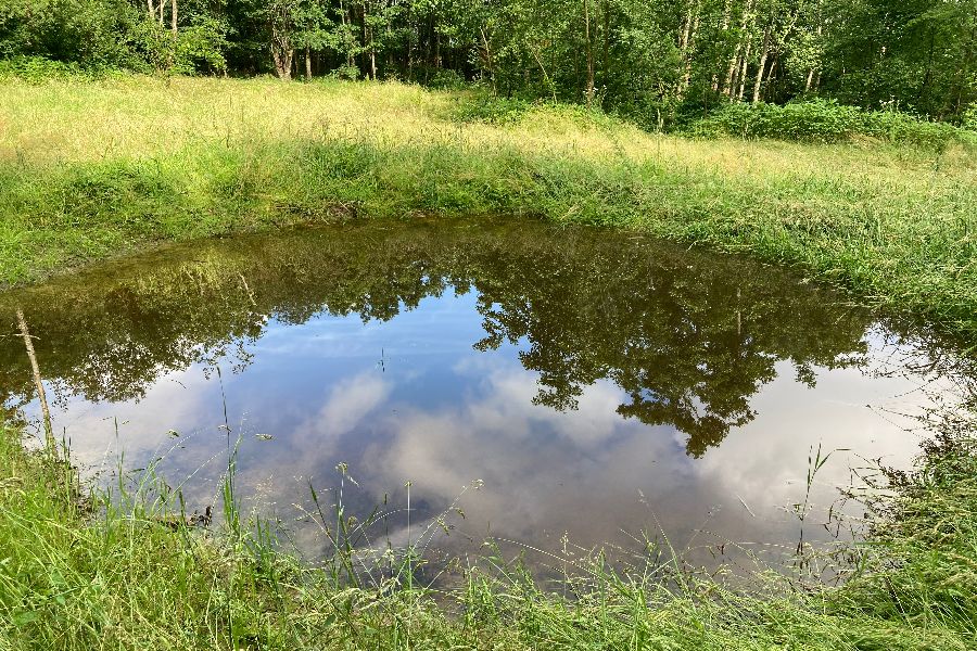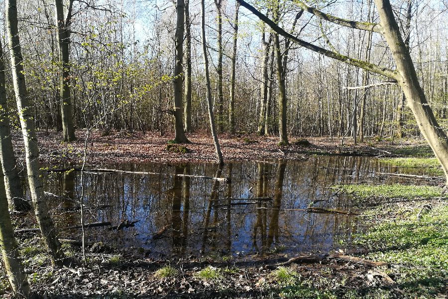 Die erzeugten lichten und ungleichaltrigen Bestandsstrukturen sind auch der Lebensraum der Bechsteinfledermaus. Um deren Ansiedelung zu fördern wurden 15 Nistkästen an den verbliebenen Randbäumen angebracht. Die im Bereich der entstehenden Waldwiese ehemals vorkommenden Feuchtbio-topbereiche waren verlandet und ökologisch tot. Die Wiederherstellung dieser Biotope ist sehr viel großzügiger erfolgt, um trotz zunehmenden Niederschlagsdefizit ausreichende Wasserreserven sicherzustellen und so die vollständige Entwicklung des Amphibienlaichs zu gewährleisten.